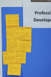 After each conversation, participants jotted down their favorite takeaways and posted them to the Petals of Wisdom Wall under the matching topic. At the conclusion of the four rounds, attendees browsed the wall and placed heart stickers next to the ideas that resonated most—creating a visual record of the evening’s collective wisdom.