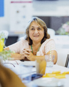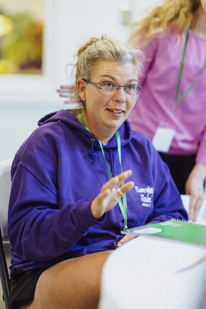 Attendees settled in at round tables and began a series of four lively discussion rounds. Each table selected its discussion topic at random from an envelope, diving into one of five categories: